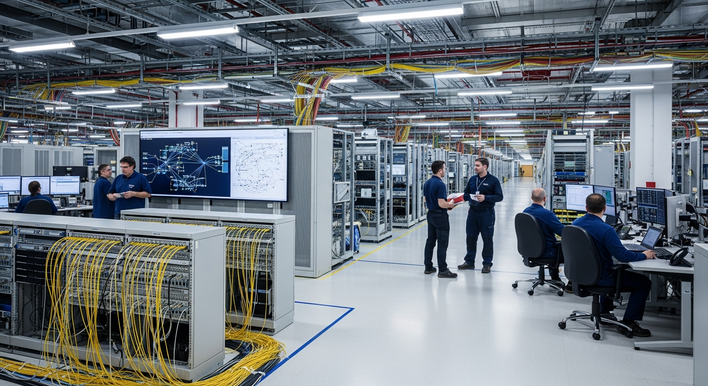 L’infrastructure numérique est l’ensemble des composants physiques et logiciels qui permettent le fonctionnement des systèmes de communication. Cela inclut les câbles (cuivre, fibre optique), les équipements de commutation et de routage, les serveurs, les centres de données, et les stations de base pour les communications sans fil. Cette infrastructure est la fondation sur laquelle toutes les formes de transmission de données reposent, de la simple conversation téléphonique aux flux vidéo haute définition et aux transactions financières complexes.